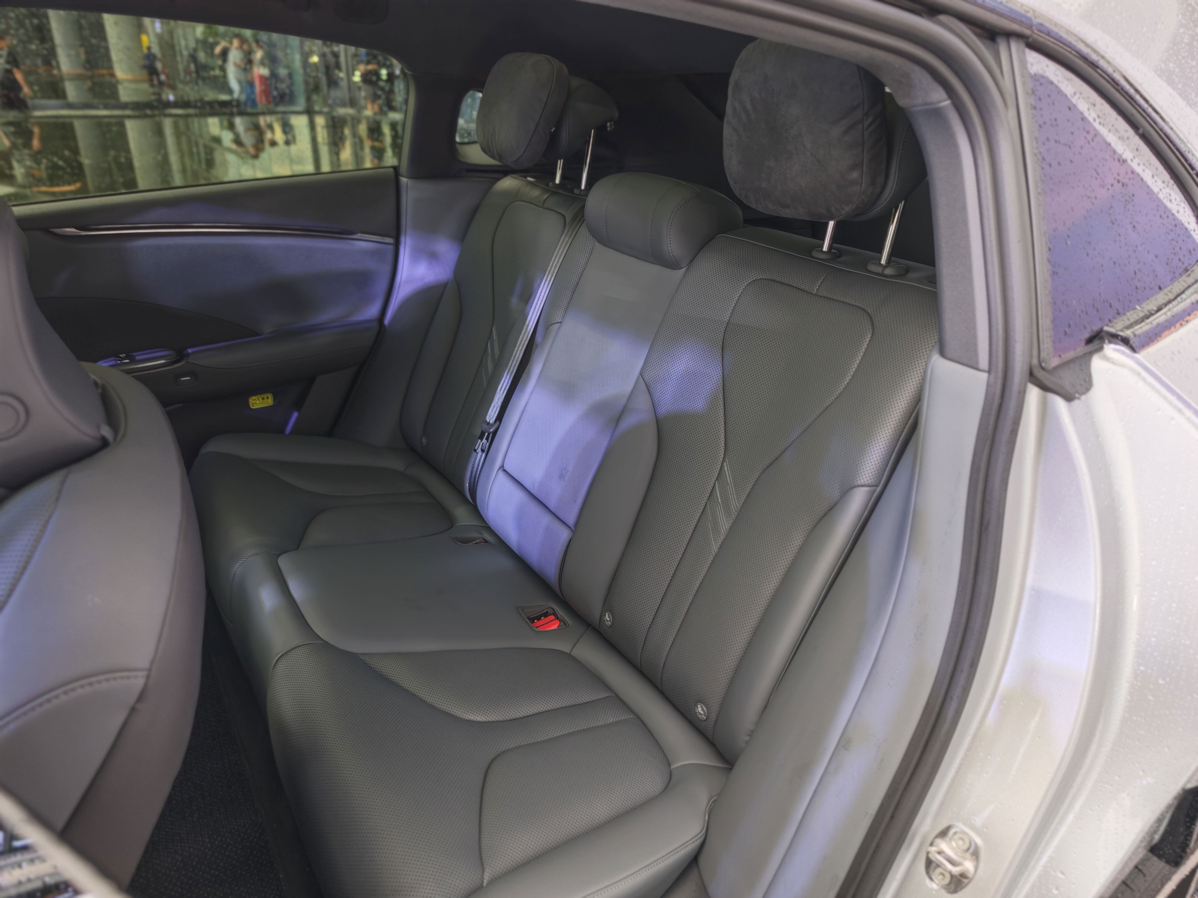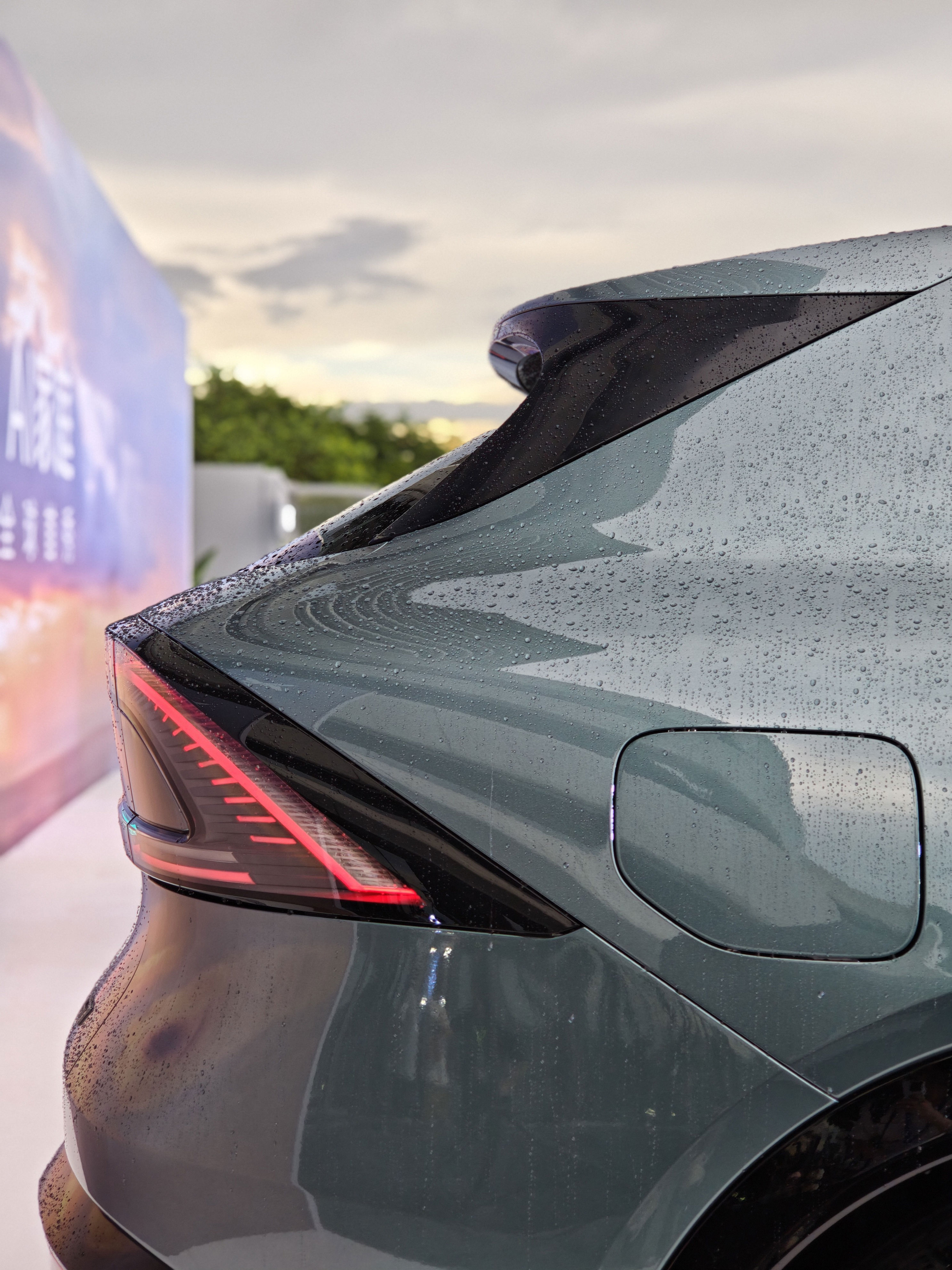 尾部设计延续家族化风格,C形贯穿式尾灯组形成显著视觉标识,后包围通过分层结构与熏黑处理强化运动质感,车顶扰流板进一步优化空气动力学表现。